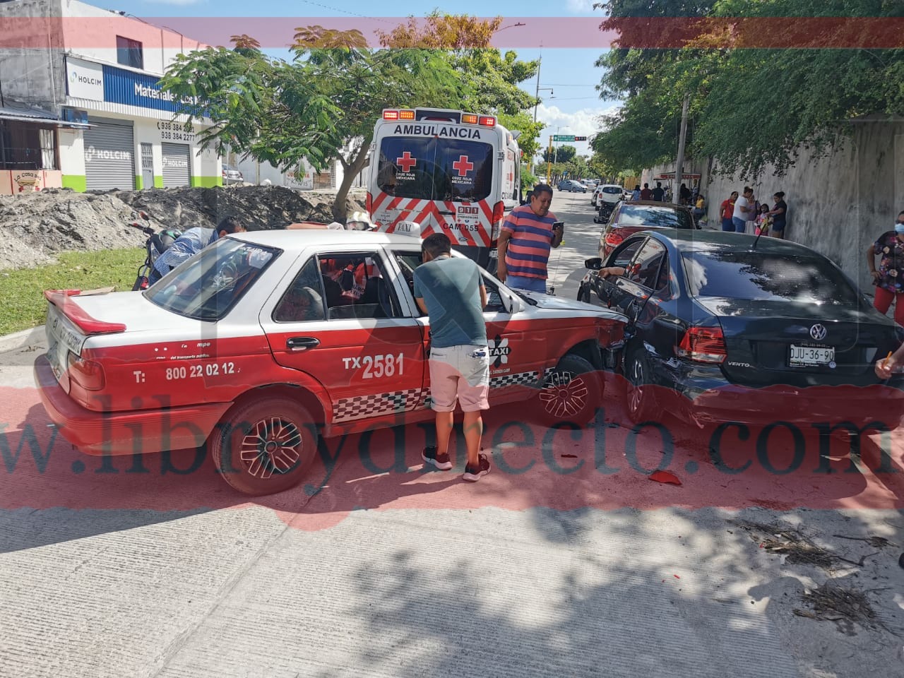 Tras el Fuerte choque los daños fueron de mayor cuantía y el chofer del taxi permaneció al interior de este muy desorientado por lo que al sitio arribaron paramédicos de la Cruz Roja Mexicana, pero tras varios minutos de intentar estabilizarlo no les fue posible pues el hombre se notaba aún más desorientado, por lo que le costaba trabajo respirar y ponerse de pie.