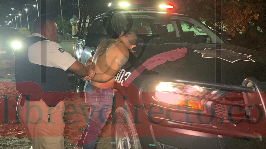 Al lugar arribaron elementos de la Policía Estatal preventiva quienes intentaron dialogar con este hombre quien se negó a identificarse y el cual estaba bajo los influjos de alguna sustancia tóxica por lo que fue esposado y abordado a la paila de la patrulla.