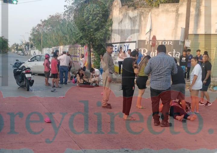 CD DEL CARMEN 07/04/2023.- Dos mujeres fueron trasladadas graves a diferentes centros hospitalarios luego de ser accidentadas por un vehículo particular en calles del fraccionamiento nacozari; tanto el vehículo involucrado como la motocicleta quedaron severamente destruidos mientras que las dos lesionadas qiedaron tiradas en el pavimento con múltiples fracturas y una de ellas con posible traumatismo cráneo encefálico.