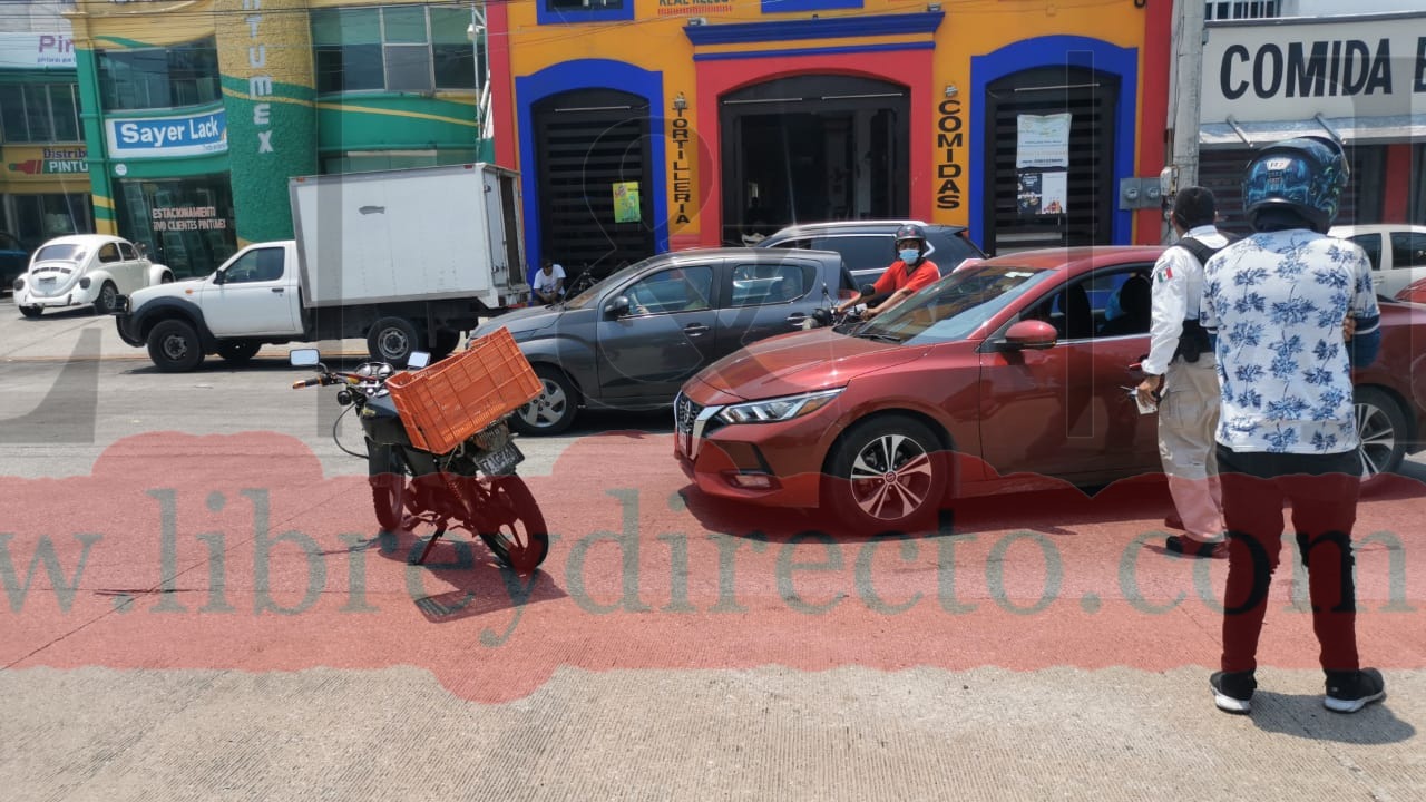Este incidente ocurrió cerca de las 12;40 horas de la tarde, sobre la avenida periférica por avenida 10 de julio a escasos metros del reloj de las tres caras, lugar donde el guiador de una motocicleta Italika, color negro, con matrícula de circulación 71GPG1 del estado de Campeche, se hizo de palabras con el conductor de un automóvil particular de la marca Nissan Sentra, color rojo, con matrícula de circulación DGE-888-A del estado de Campeche.