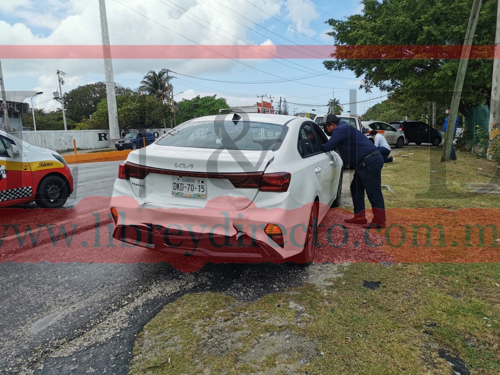 No guardo la debida distancia entre un vehículo KIA Forte, color blanco con matrícula de circulación DKD-70-15 del estado de Campeche, al qué impacto por alcance dejando como saldo, daños de mayor cuantía pero afortunadamente sin registro de personas lesionadas.