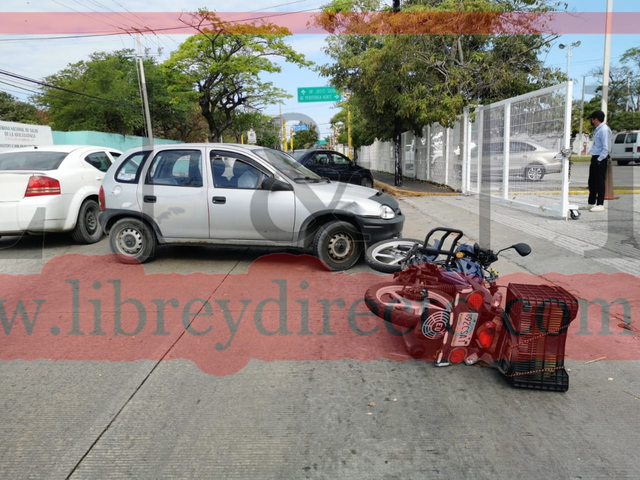 CD DEL CARMEN 03/03/2022.- Motociclista resulta lesionado en el rostro al impactar su motocicleta contra un vehículo que se pasó el alto frente a la rectoría de la Universidad Autónoma del Carmen «Unacar».