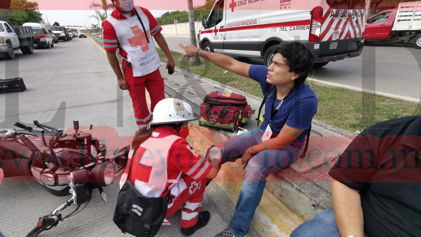 CD DEL CARMEN 07/04/2022.- Empleado del municipio es accidentado frente a la Eti 26 por automovilista que trato de reincorporarse a la vialidad luego de permanecer estacionado por algunos minutos; el lesionado fue valorado por personal de la Cruz Roja Mexicana.