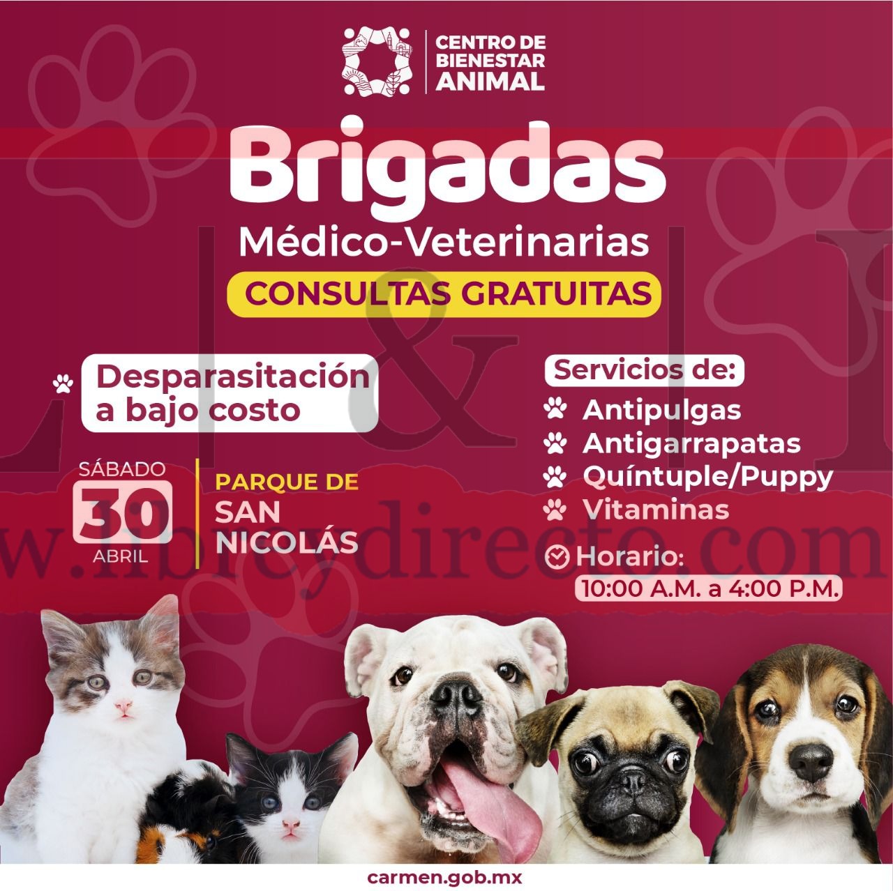 CD DEL CARMEN 29/04/2022.- La Brigada Médico-Veterinaria llega mañana sábado 30 de abril al Parque de la col. San Nicolás, de 10:00 A.M. a 4:00 P.M., para brindar atención a los animalitos domésticos y a callejeritos.