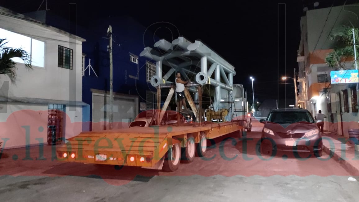 CD DEL CARMEN 16/05/2022.- Daños en cablería causó el conductor de un tráiler que no midió sus dimensiones correspondientes e ingreso en una calle prohibida ubicada en la Colonia Justo Sierra por lo que fue detenido por vecinos y elementos de la Policía Municipal debido a que provocó daños en mufas de predios.