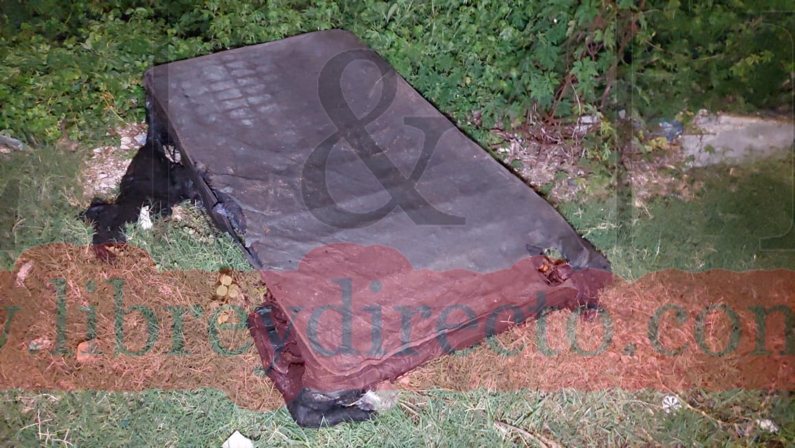 CD DEL CARMEN 01/06/2022.- Propietarios de un predio particular ubicado en la colonia Primero de Mayo reportaron a traves de los números de emergencia haber sufrido un atentado, ya que dos sujetos desconocidos llegaron hasta su hogar y arrojaron un colchón a la puerta de su domicilio, para luego prenderle fuego con una botella de gasolina; Elementos de bomberos voluntarios lograron controlar la situación para evitar que el fuego se propagara.