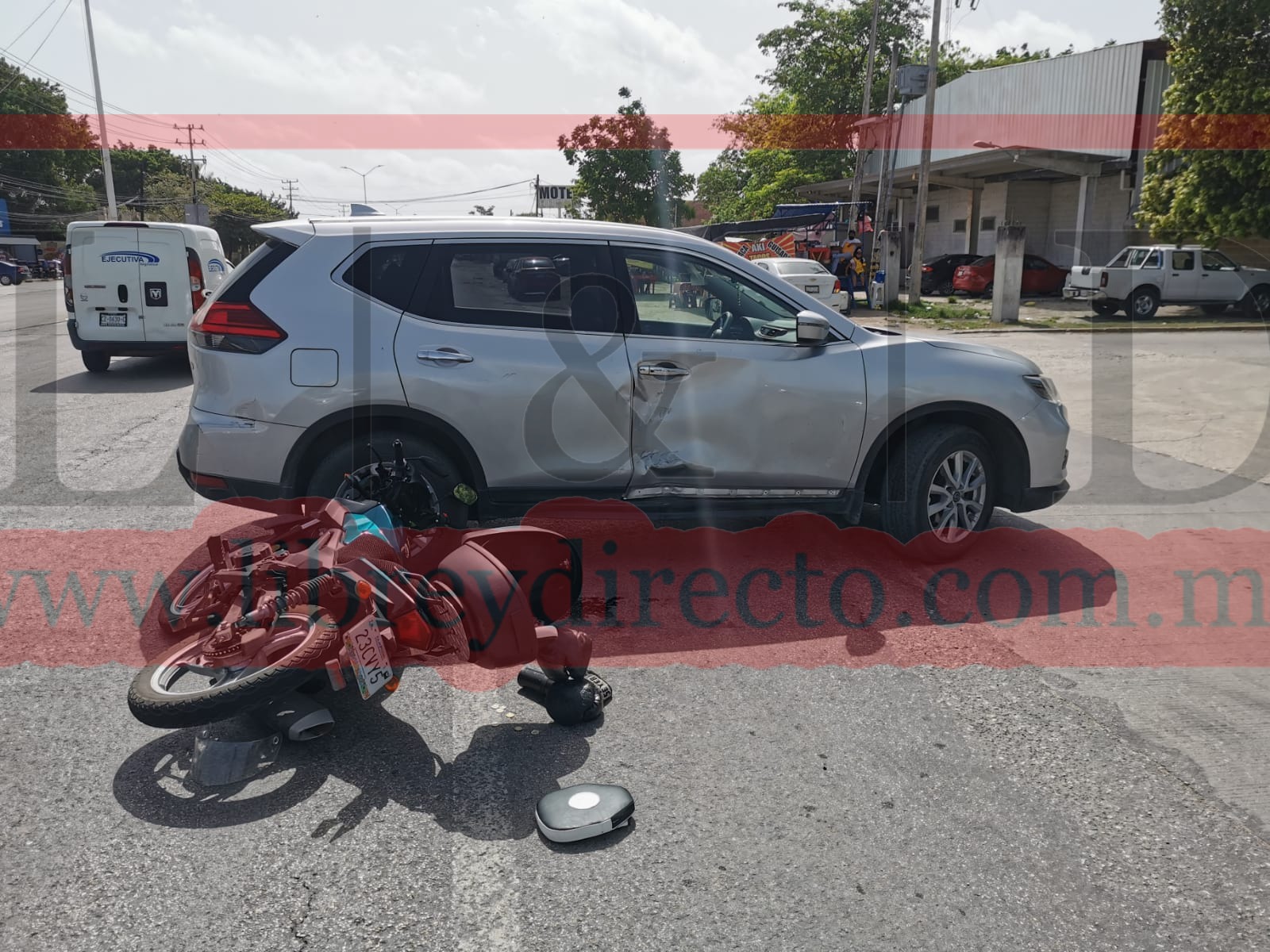 CD DEL CARMEN 11/06/2022.- Durante la mañana de este sábado se registró un aparatoso accidente vehícular frente. Fraccionamiento lagos de la carretera en donde el guiador de una motocicleta particular que circulaba en aparente preferencia fue accidentado por el conductor de una camioneta particular que le cerró circulación.