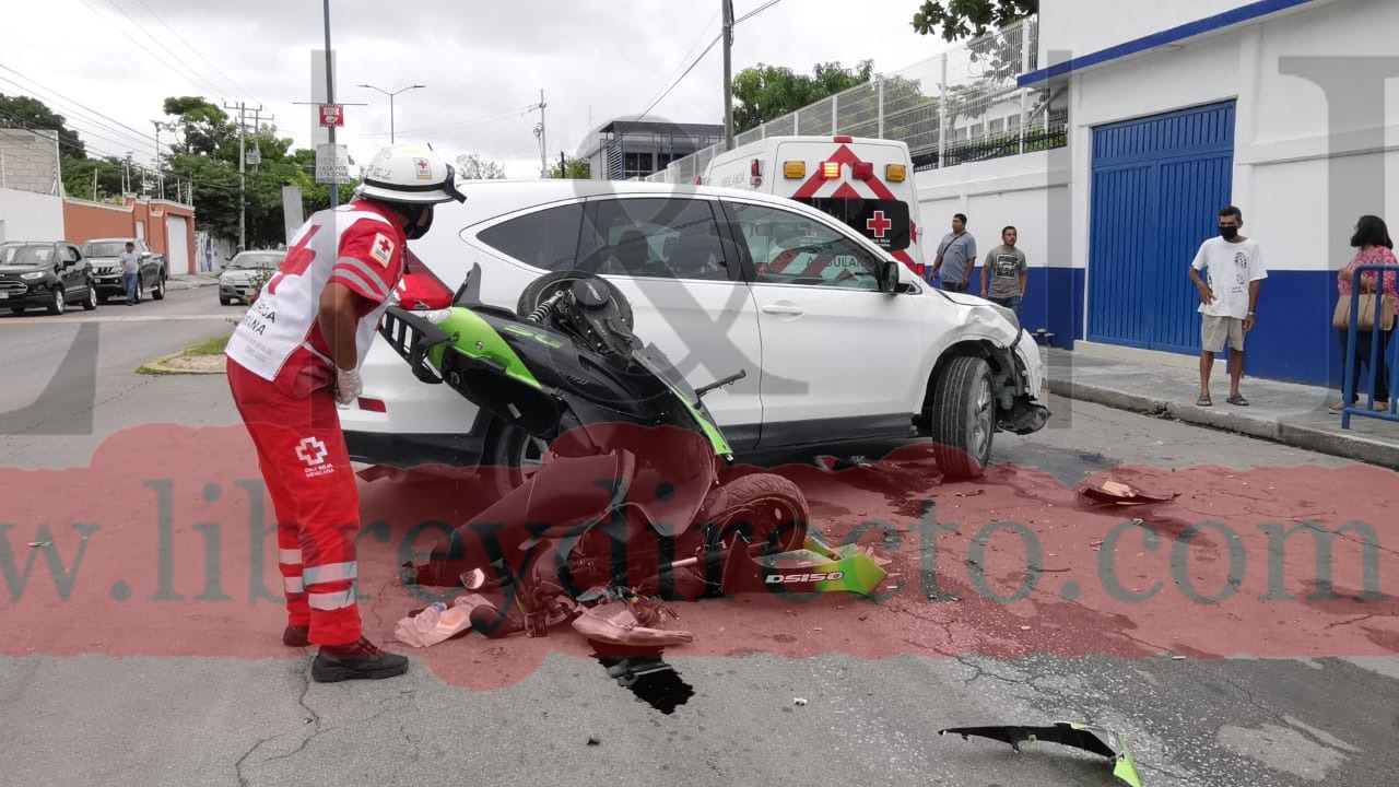 Al llegar justamente al cruce con la calle 36 y frente al colegio Victoria de la colonia Revolución, la conductora de una camioneta particular, Honda CR-V, color blanco, con matrícula de circulación DHZ-68-46 del estado de Campeche que circulaba sobre la misma avenida pero en sentido opuesto.