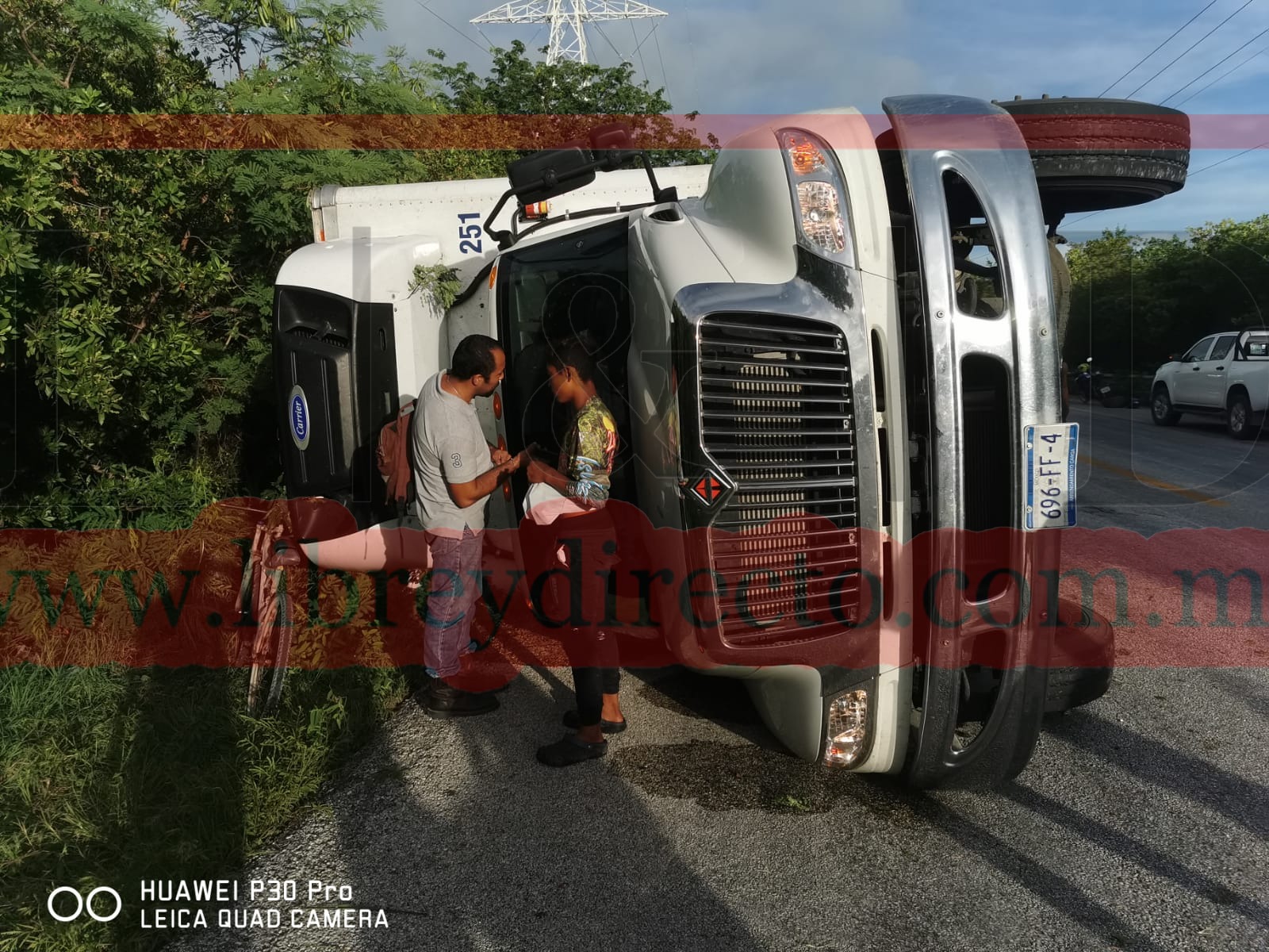 CD DEL CARMEN 01/09/2022.- Esta mañana sobre la carretera Carmen Puerto Real se registró otra volcadura más de un camión torton cargado con alimentos perecederos, frutas y verduras, como ya es costumbre la rapiña por parte de pobladores cercanos al lugar no se hizo esperar, a pesar qué de la parte del compresor que mantenía fría y a temperatura los alimentos salía demasiado humo.