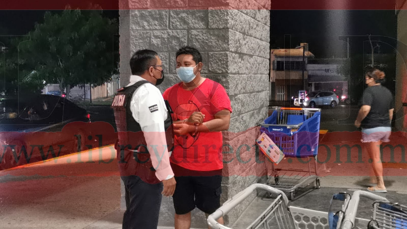 Al llegar a la zona de los guardias de seguridad uno de ellos le marcó el alto por lo que el hombre se tornó nervioso indicando que había pagado todos los productos que llevaba en el carrito.
